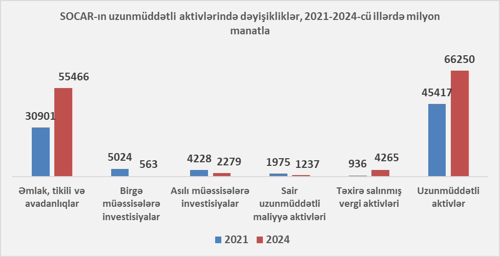 Ötən 3 ildə SOCAR-ın uzunmüddətli aktivlərinin həcmində və strukturunda çox ciddi dəyişiklik baş verib və bunu aşağıdakı diaqramdan da görmək mümkündür: