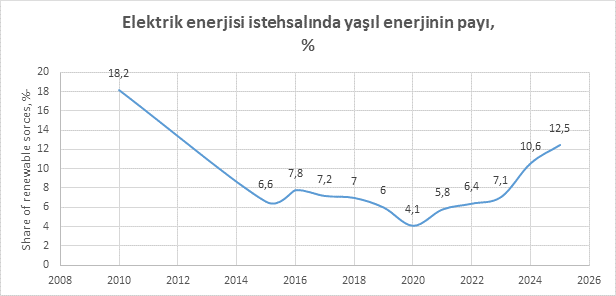 Elektrik enerjisi istehsalında yaşıl enerjinin payı